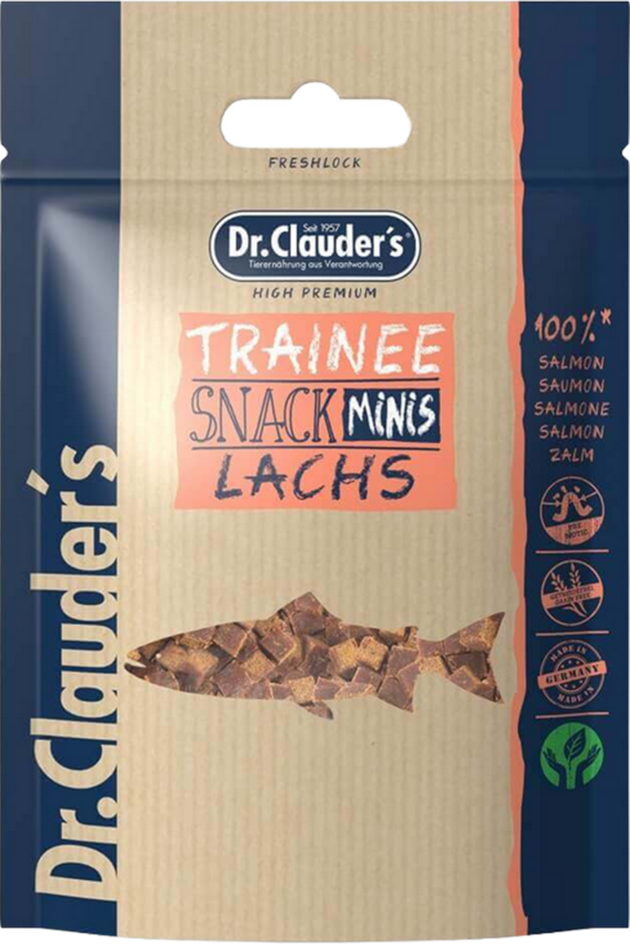 Les friandises Dr Clauder’s dés de saumon sont des morceaux de viande légèrement cuits, sans ajouts superficiels d’additifs. Ce sont des friandises naturelles et saines.